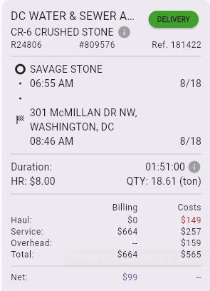 When reviewing tickets, you can click on them to see billing/cost breakdowns such as the ticket below: