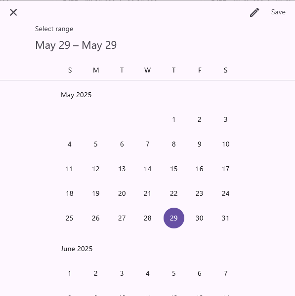 Users may also click on the pencil icon at the top right to manually type in the desired dates.